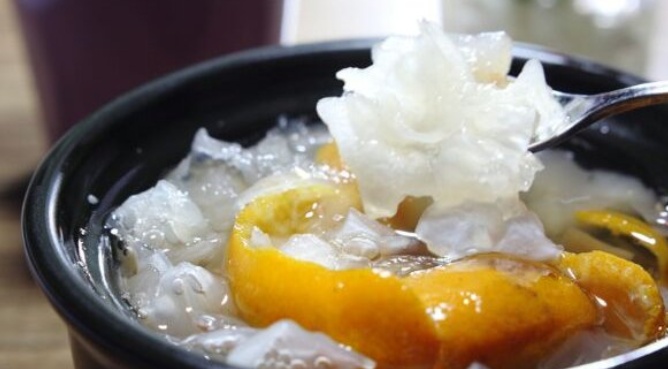 银耳泡发后撕成小朵,雪梨切成块,一起放入锅中加水煮至银耳软糯后,加入冰糖、陈皮再煮5分钟。