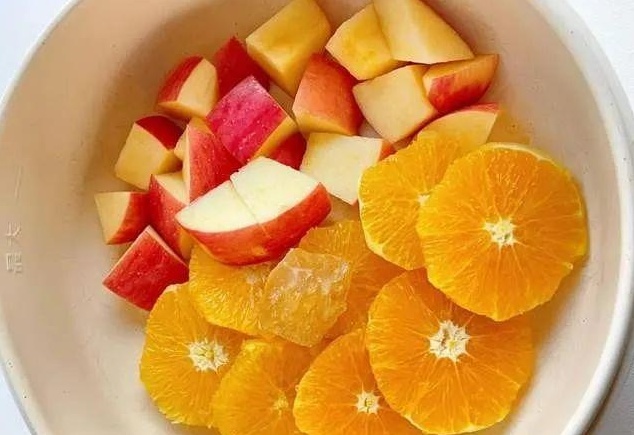 1、苹果用盐搓洗外皮后洗净、切块,把橙子去皮后果肉切片,橙皮切丝备用。