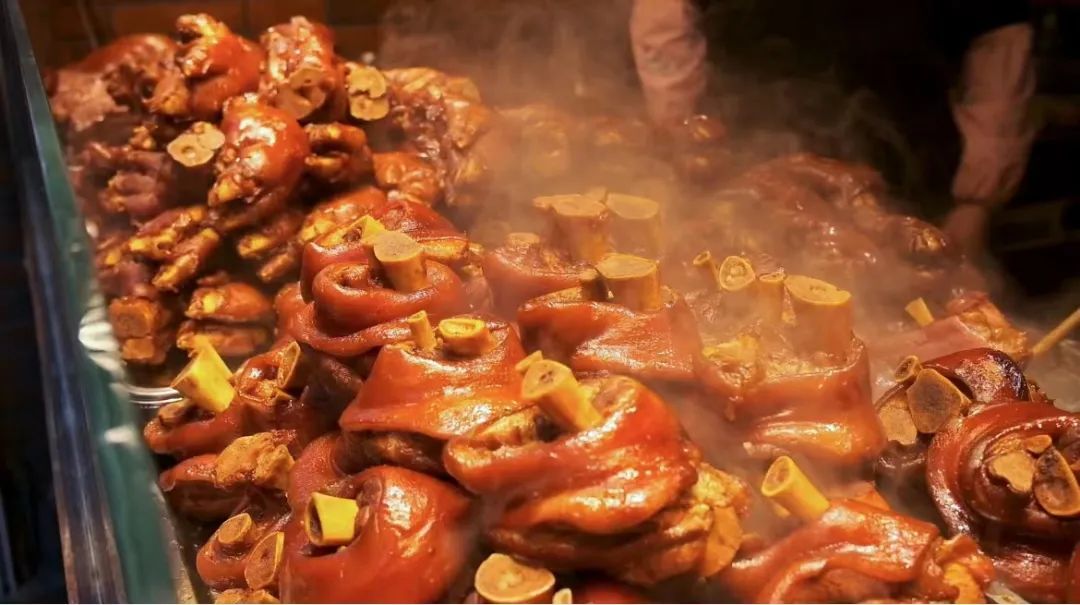 除了传统糕点,蹄膀、猪脚等卤味儿也颇受欢迎,香气四溢,肥而不腻,算是逢年过节的一道经典菜肴。