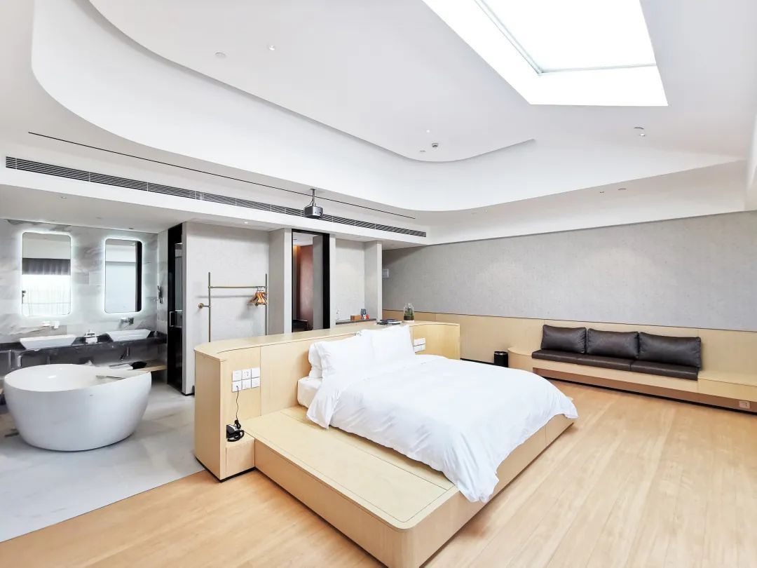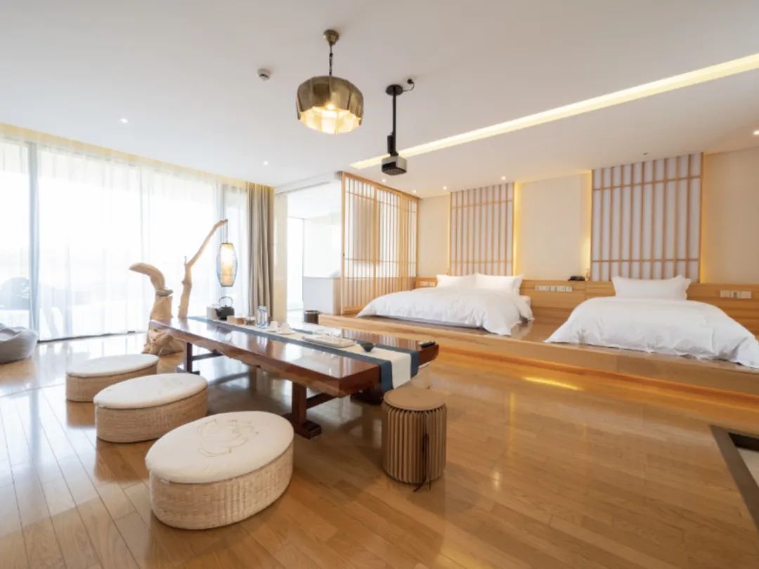 我们的酒店是由日本、西班牙、意大利及国内设计师联手设计,在「点状供地」区域内打造了融合稻田景观和水系风光,酒店包含12栋日本进口一户建套房(谷12),14间星空套房(星空14),16间雅致日式套房(米16),14间庭院特色套房(稻14)和66间特色田园客房(禾66)。