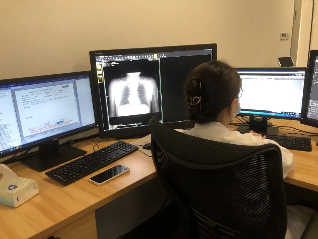 随后,李春晨将开具好的诊断报告回传至社区医院,患者在社区就可以拿到报告,无需再到上级医院奔波。医院放射科主任梁凯轶介绍,在阅片过程中,一旦发现情况危急的病人,将立刻要求转诊,“如发现‘白肺’病人,我们将第一时间告知社区医院,让患者抓紧过来,我们这边同时做好接诊准备。”