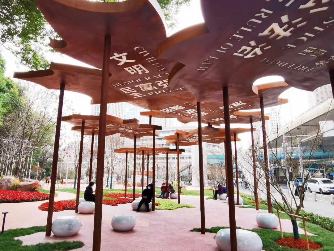 反复听取意见建议,让曹家堰绿地改造提升项目更契合人民群众的实际需求,最大程度关乎民情、代表民意、体现民生。据统计,通过各类渠道共收到意见建议48条,其中线上建议36条、线下建议12条,主要集中在老人健身、亲子活动、休憩配套设施、植物配置等方面。最终共采纳确定核心价值观主题、增设景观亭、“旱喷”、座椅等意见建议9条。通过多种途径,不仅广泛汇聚了群众的智慧,也回应了群众真实呼声,“华山新语”口袋公园,这座真正为人民而建的、满足人民需要的公园应运而生。