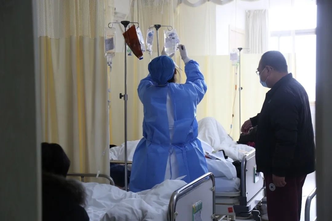 “去年12月以来,已经收治患者223位,每天都是满床状态,患者平均年龄73岁,其中有基础疾病的重症高龄患者31位。”呼吸内科护士长丁士英说。