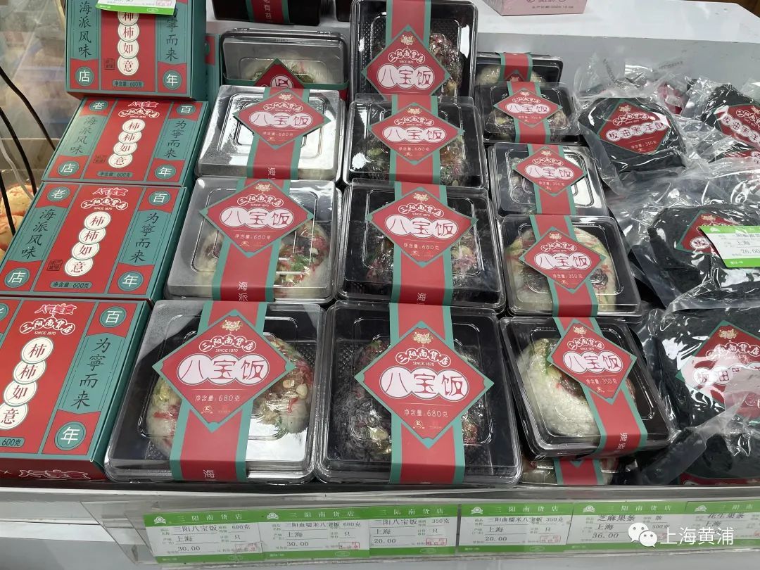三阳南货店的八宝饭,坚持150余年的非遗传承技艺制作,让其始终成为南京路上的“人气王”之一。三阳南货店副经理楼晨道出了其中奥秘,馅芯使用的豆沙是古法炒制的手工豆沙,糯米与馅芯比接近1:1。糯米中拌的猪油更是讲究,用传统工艺加工明火熬制出来的,带点玉白色,保持了原来的色和香。