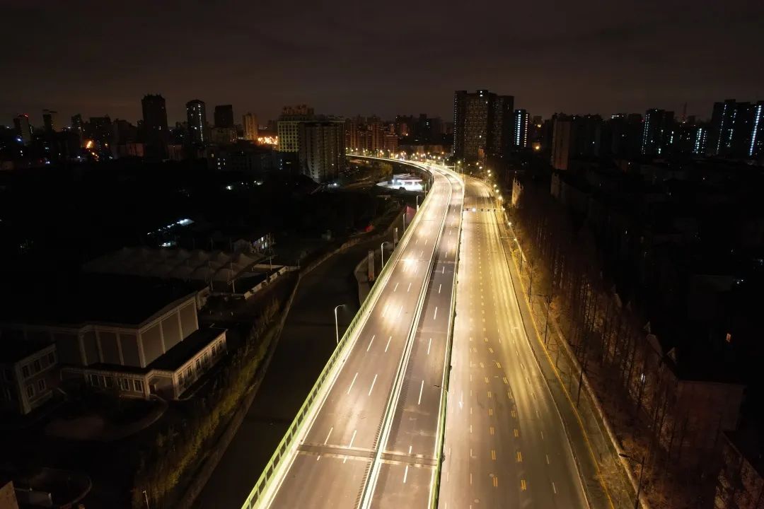 内环高架(四平路-政本路)外圈已于2022年10月30日完成改造升级,随后项目团队马不停蹄,于当年11月16日正式启动内圈施工,历经58天完成改造。此次内圈改造主要实施内容与外圈相同,重点是“桥梁结构、附属设施、智慧运维、环境景观”四大方面的功能完善提升。