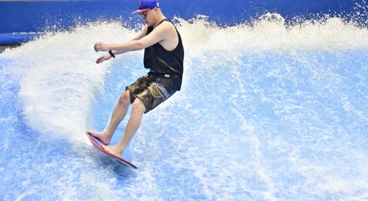 而在另一边的室内冲浪馆,李先生也感受了一把“乘风破浪”,“环境不错,价位也可以接受,锻炼一下身体平衡挺好的。”
