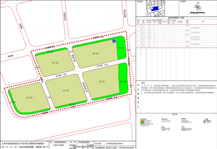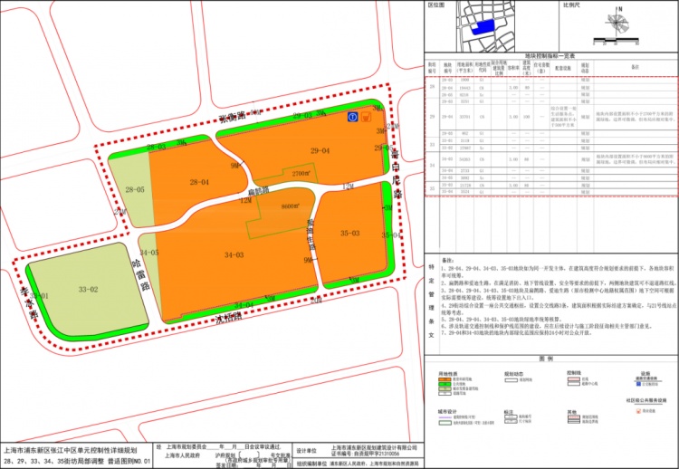 28-04、29-04、34-03、35-03地块容积率调整至3.0;28-04、34-03、35-03地块建筑高度调整至80米,29-04地块建筑高度调整至100米。