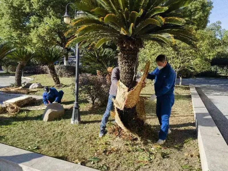 据统计,此次寒潮共出动一线作业人员470人次,对166株海枣、铁树等不耐寒植物进行了防寒保暖,储备草袋1500只,黄沙240袋。