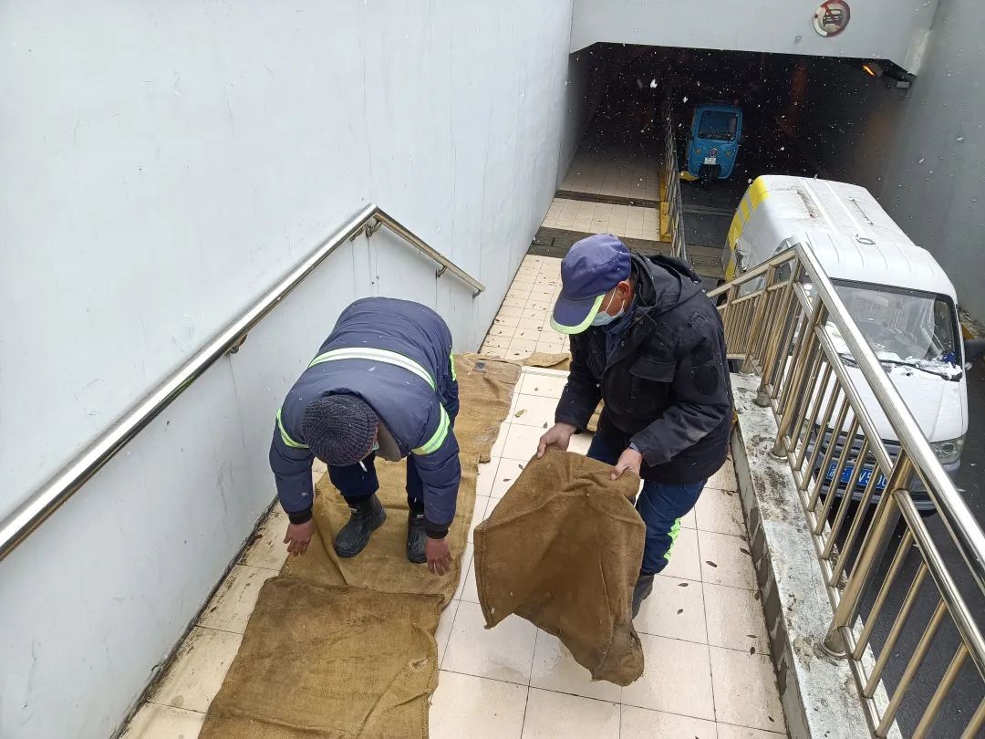 区交通设施管理中心一直密切关注天气变化,从今晨开始,由于下雪,一些人行天桥的楼梯、桥面上的积雪还是比较明显。道路养护人员立即出动,及时清扫,并铺上草垫,防止行人滑倒,地面道路上没有积雪结冰。道路养护单位严阵以待,除雪剂、防滑草垫、盐以及除雪设备等应急抢险物资已就位,24小时值守落实到位。目前全区管道路应急抢险队伍13支全部上岗,共计142人待命,聚焦车流量较大、路况欠佳或者是社会投诉集中的路段,加大检查频率。对有危及行车行人安全的病害,做到及时发现、及时处理。