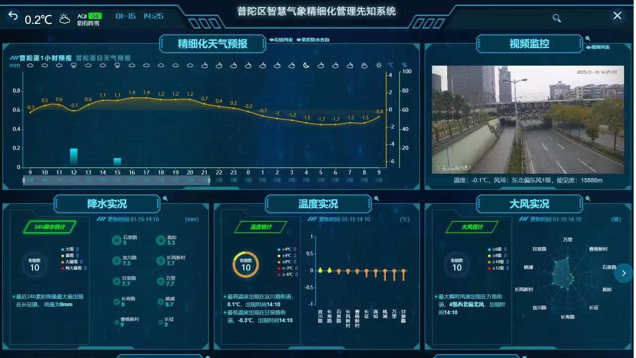 依托“数智普陀·智慧气象系统”,实时掌握全区降水降温情况