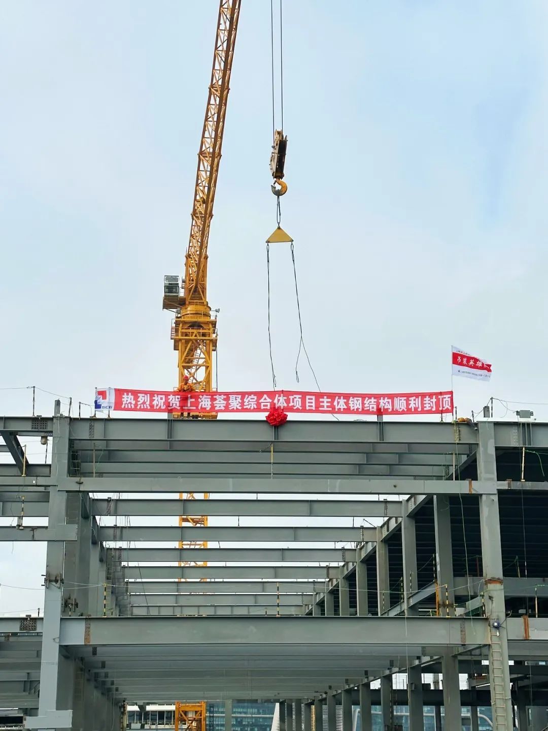 随着最后一根主体钢梁稳稳就位,上海荟聚综合体项目主体钢结构顺利封顶,为完成节点工期奠定了坚实基础。
