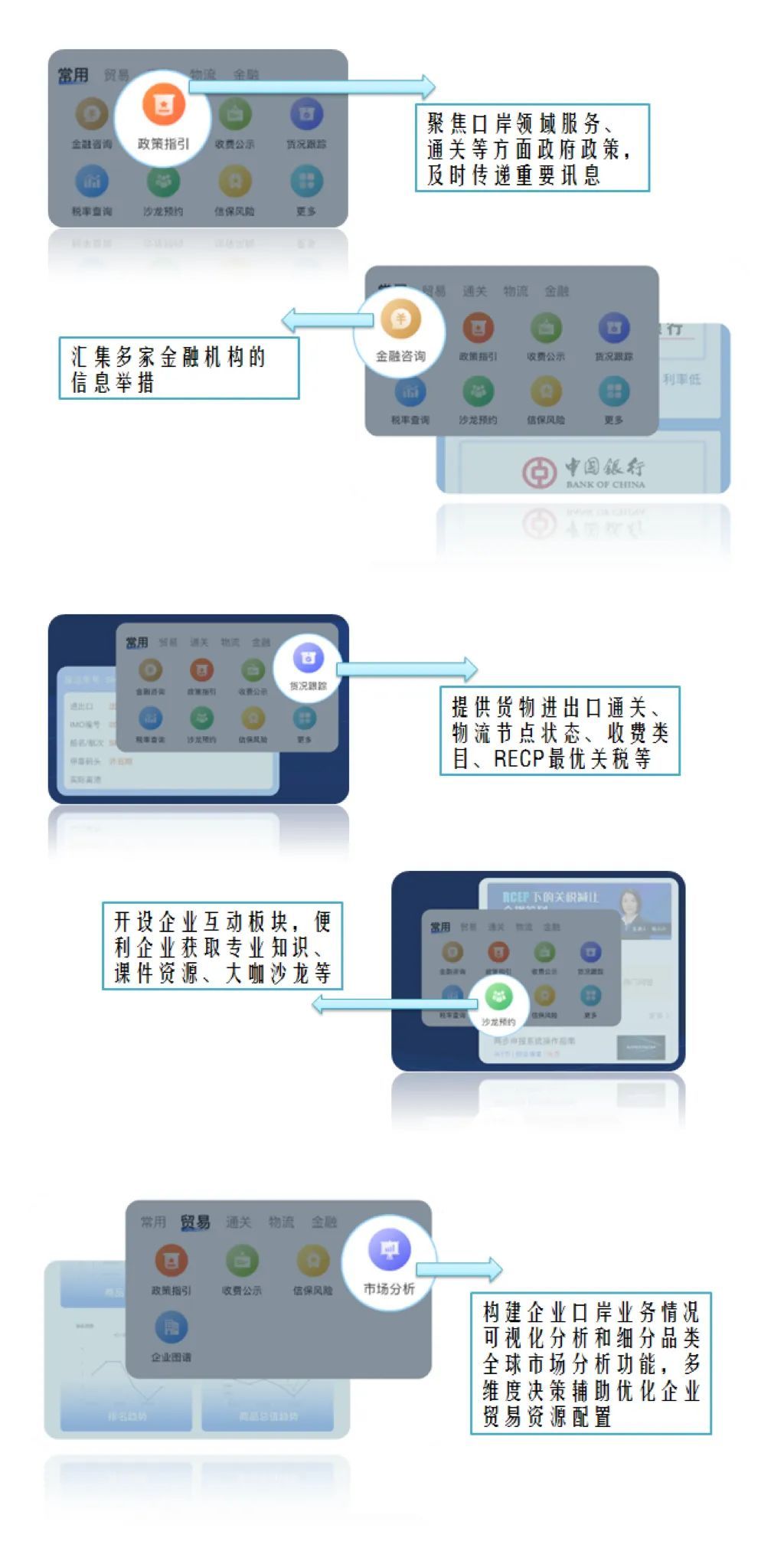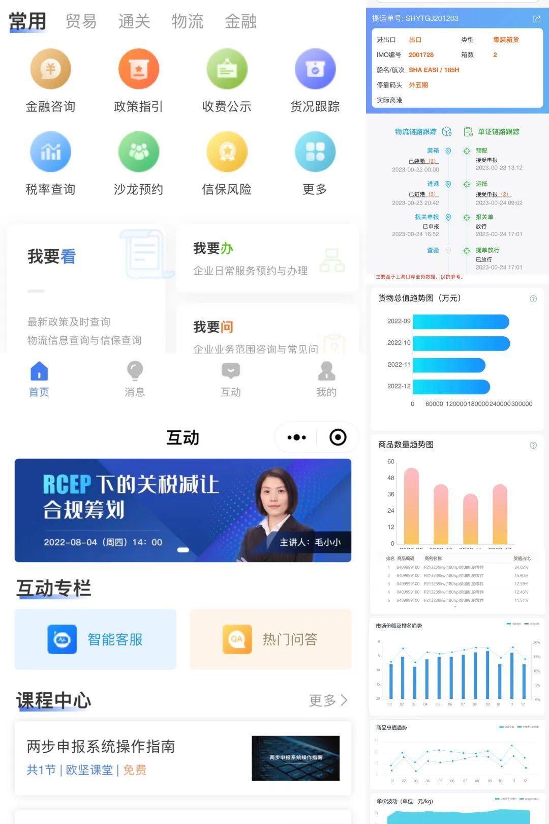 口岸收费标准、商品HS、货物物流跟踪等公共查询类服务、也有针对企业自身业务数据进行深度分析、构建可视化图表,为企业优化贸易、物流资源配置提供决策支持的个性化服务。