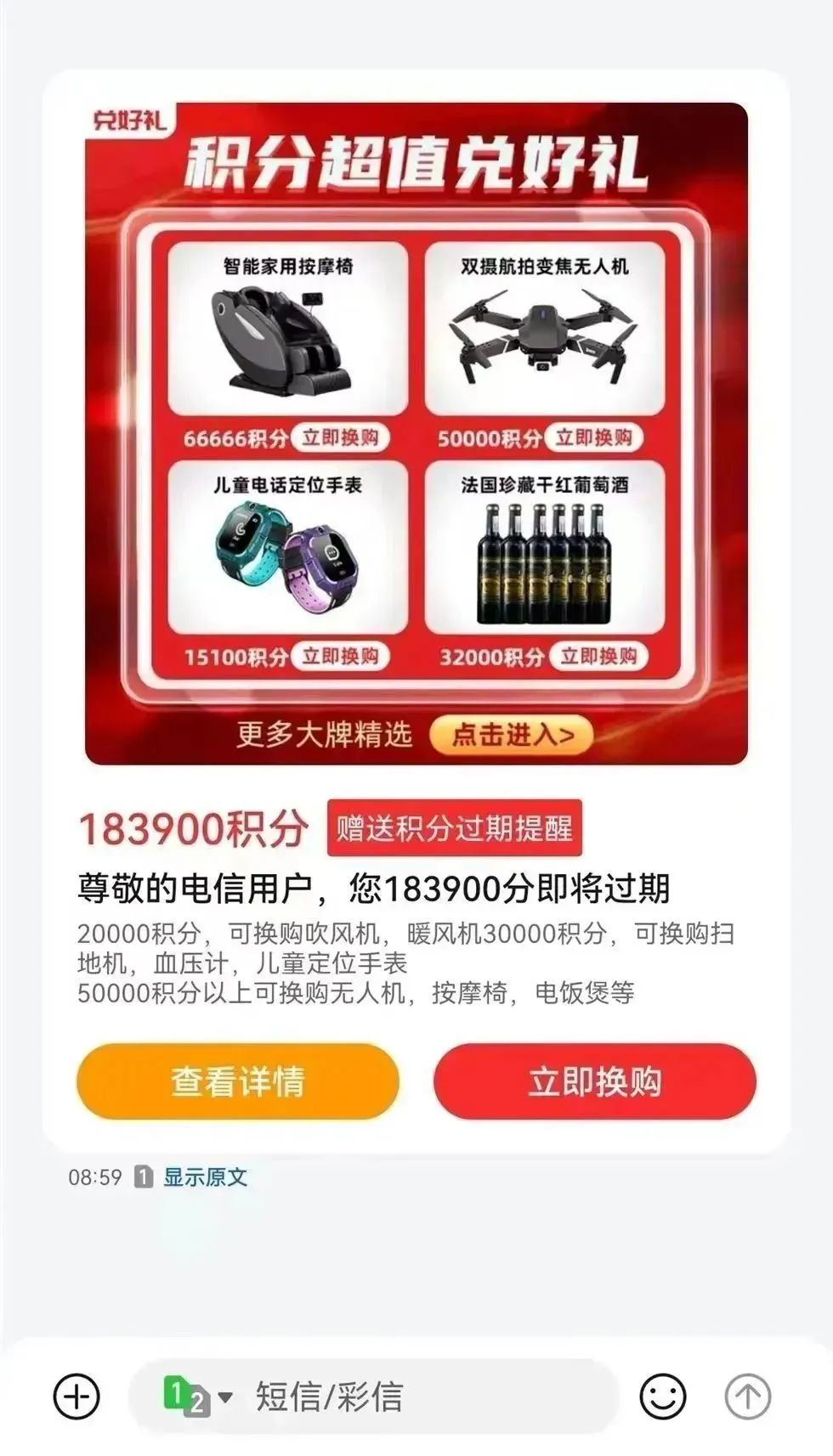 ●不要轻信积分到期作废,提醒兑换商品的短信等信息,警惕各类所谓积分兑换“补差价”的福利噱头。
