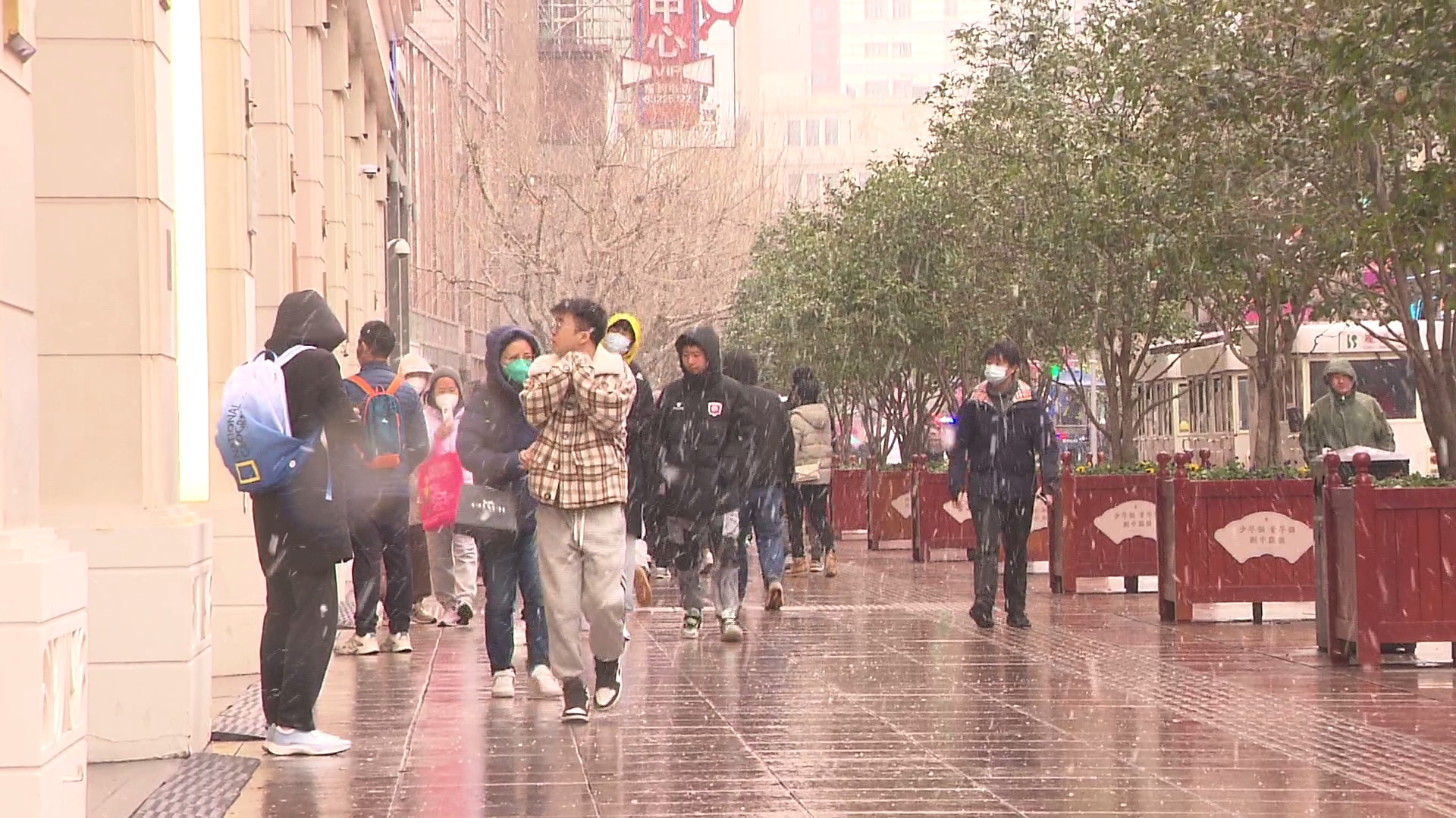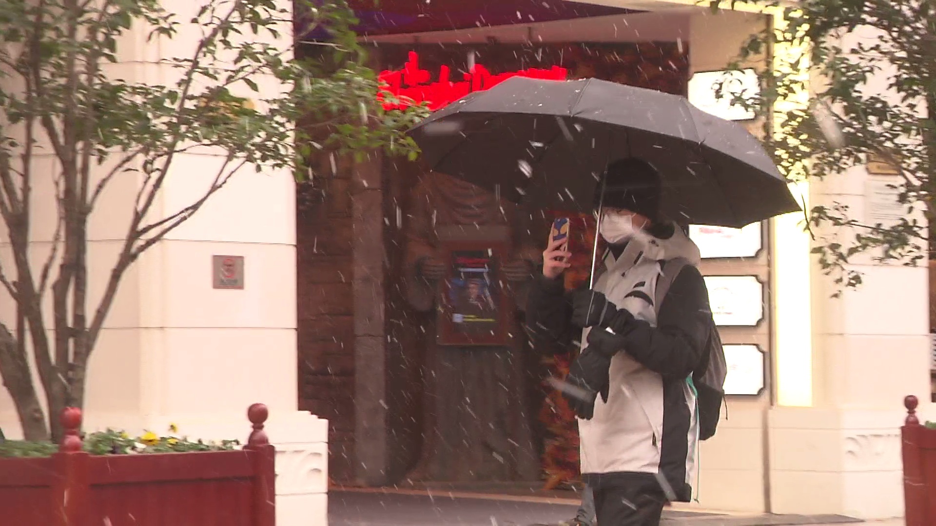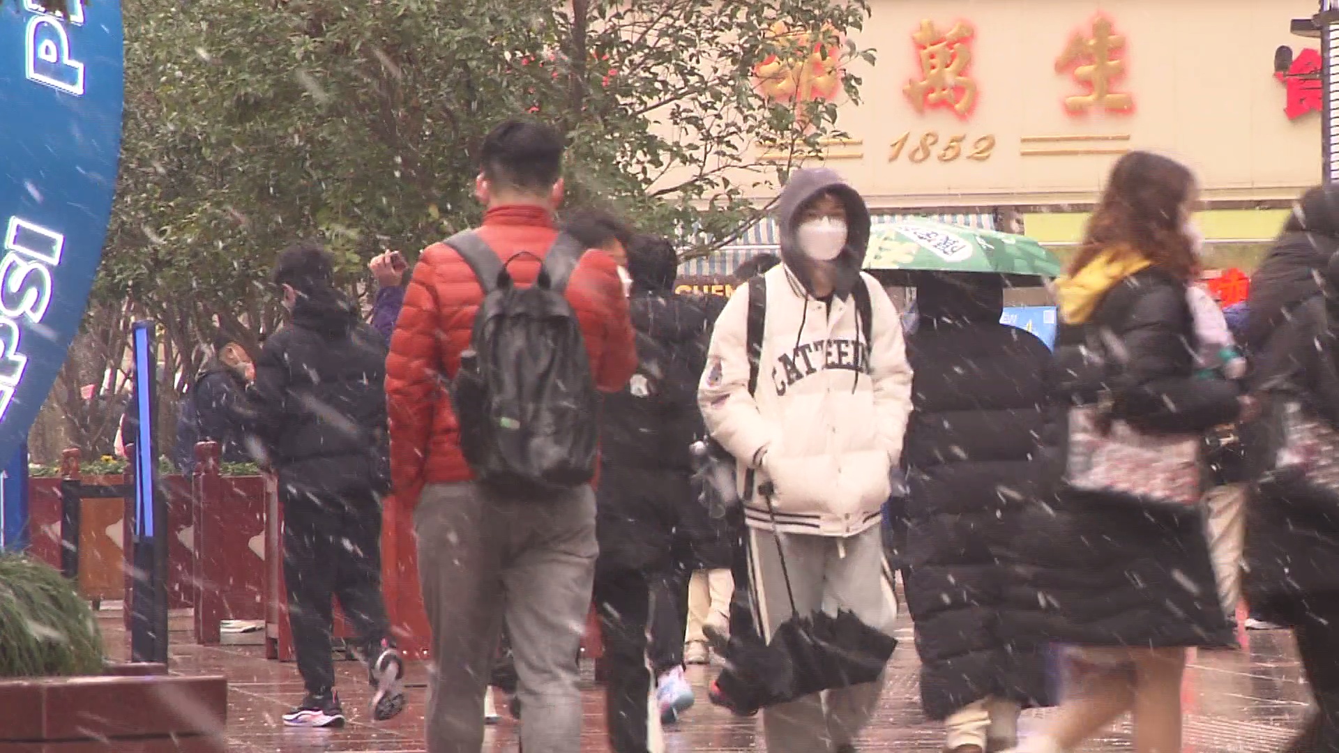 随着冷空气影响本市,今天(15日)本市气温摄氏1到3度,阴有时有小雨夹雪或小雪,夜里转阴到多云。今天上午本市开始普降雨雪,难得一见的下雪场景让南京路步行街商圈的不少市民游客喜笑颜开。