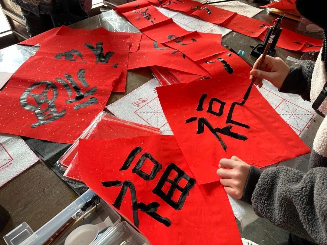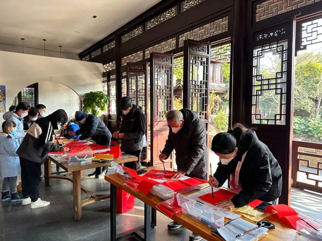 奉贤贤苑内,临一湖,有一室,优雅别致,正是活动举办地。现场,铺红纸、调墨汁、晒对联,一个个文明家庭、最美家庭,挥毫泼墨、凝气聚神、一气呵成。无论是“大朋友”还是“小朋友”,大家纷纷沉浸在这片书香的海洋,用笔尖装点着心中的春节。