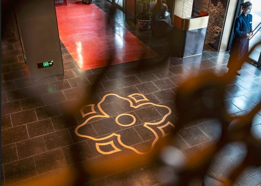 走进其中,庄重大气的中式国风感扑面而来,让人感受到十足的东方韵味。据上海老饭店品牌总经理龚大军介绍,此次调改他们围绕“东方生活美学”主题,重拾蕴藏在中国传统文化中象征温暖幸福、吉祥平安的文化符号,比如:中国红、醒狮、白玉兰、豫园九曲桥等,以简洁不简单的形式在墙壁、走廊、屏风乃至餐桌等细节上巧妙呈现。