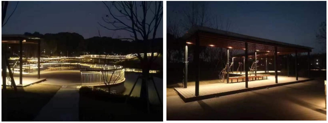 公园在主园路、栈道及景观节点都进行了亮化,灯光点缀在林间、水岸栈桥,不仅丰富了公园夜景,也保证了夜间照明与安全。除了照明设施,公园还安装了智慧监控、一键求助等管理服务设施,将进一步提升公园的管理服务水平。