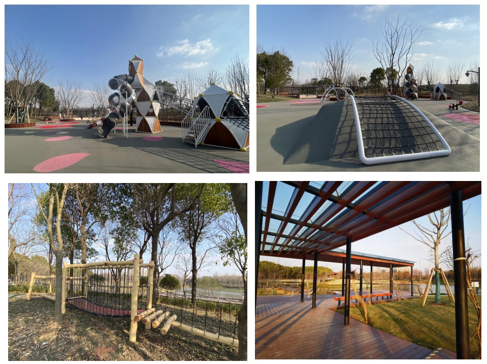 在公共空间的打造上面,充分利用现有建筑和林窗空间,结合公园地形特点,增加了林下步道、林间聚场、滨水营地、儿童游乐广场等特色功能空间,为市民提供了丰富的游赏体验内容,也为公园赋予了新的生命力。