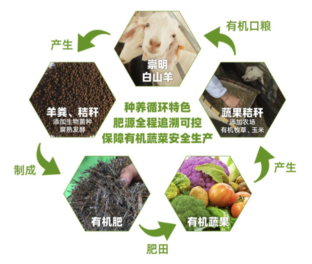 畜禽养殖方面,饲料原料产自自种牧草及自种蔬菜秸秆,药物饲料全程零添加,养殖废弃物通过堆肥处理制成有机肥料用于还田,有效提升粮油作物秸秆和畜禽粪污资源化利用率。通过建立蔬菜、水果、肉类等现有生产经营农产品信息安全追溯体系,完整详细记录投入品购买、使用和生产管理操作过程,实现生产、包装、加工、物流、零售等各环节信息监管查询全覆盖。