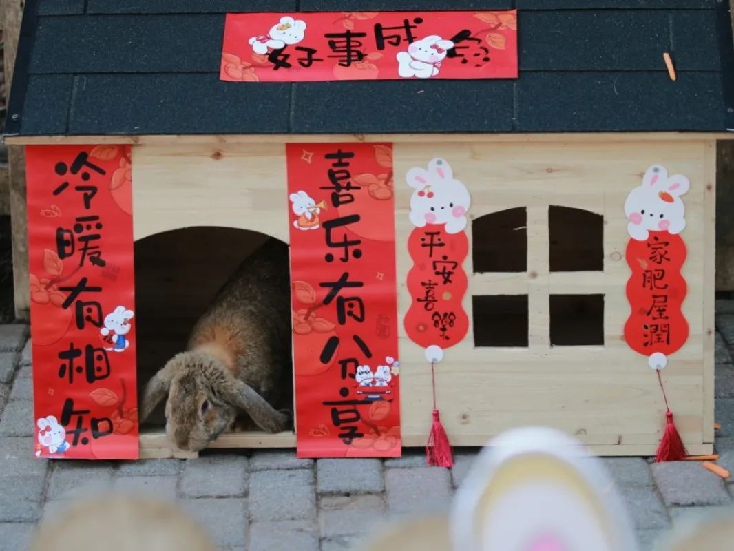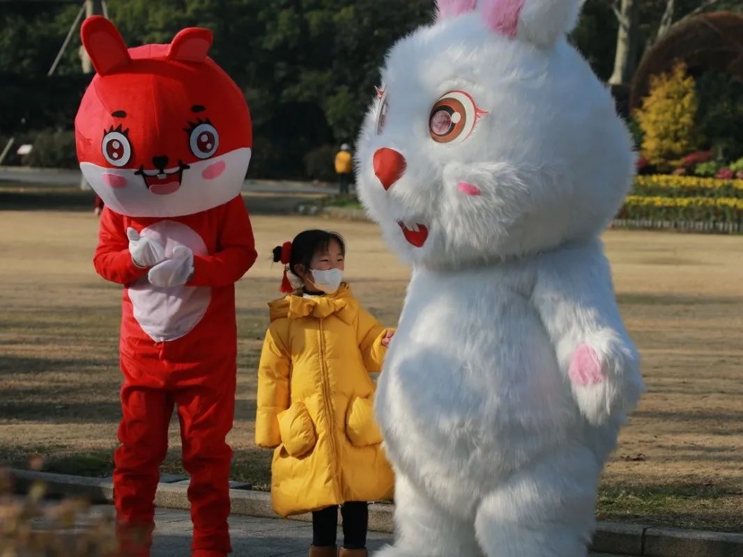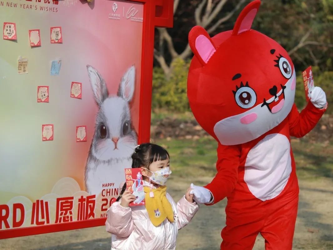 春节假期期间大门口草坪的心愿墙打卡点一定不能错过,写下新年愿望,让最美好的祝福伴随你走进新的一年。大红灯笼高高挂,各种造型各异的塑钢兔子雕塑也涂上了最亮眼的中国红,园区内洋溢着浓浓的年味,现场还有兔年特色文创派送。