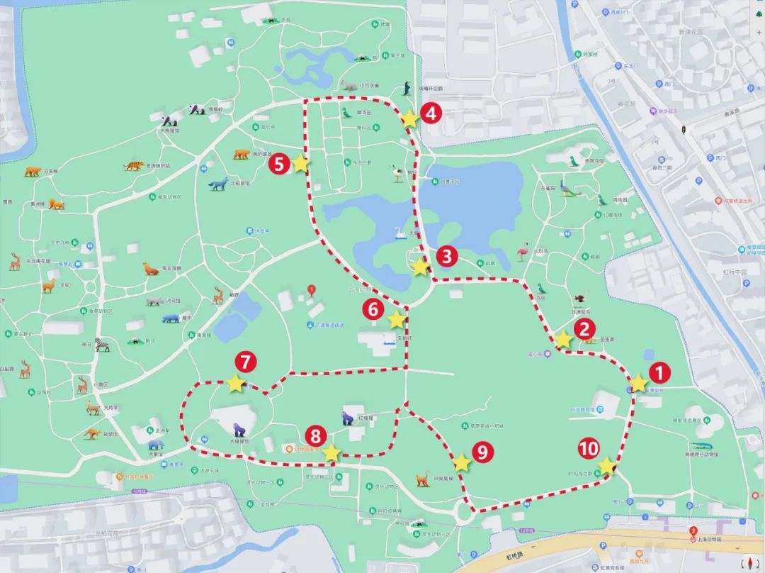 瑞兔呈祥,击退疫情,去疾除厄,运动先行。健康的体魄是一切美好生活的基础,坚持运动是唯一的王道。上海动物园推出了萌兔健康徒步活动,在园区主干道路设计了一条“兔形”徒步路线,全程近3公里的线路在关键位置都有指示牌引导。参与的游客可以自主探索,在动物园里利用运动轨迹软件走(跑)出一只“兔形”图案。