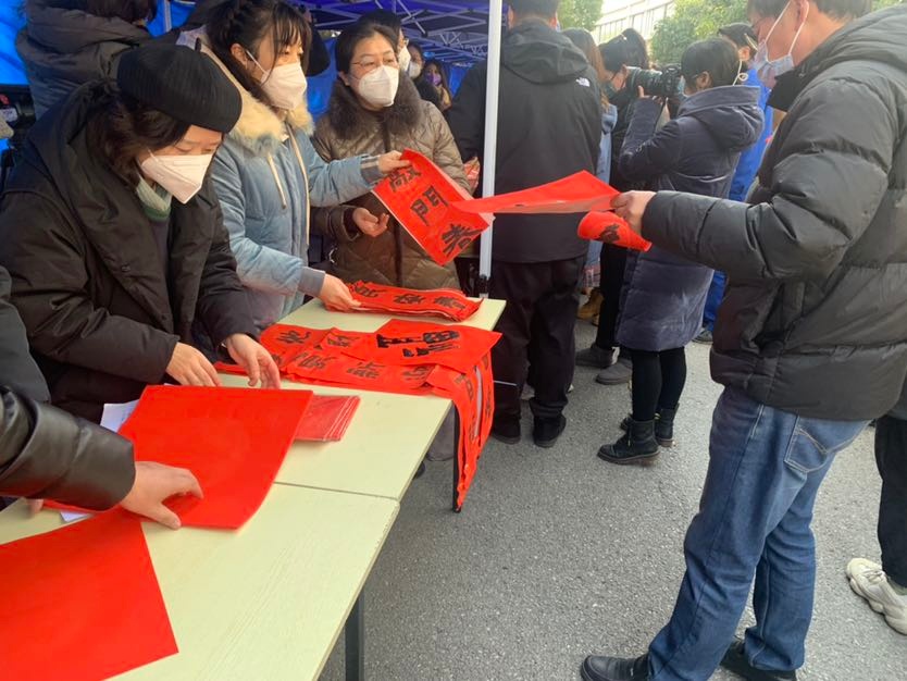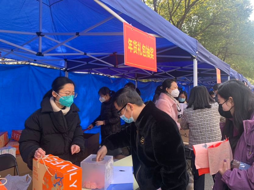 在碳谷绿湾产业园上海金山新材料孵化器发展有限公司,活动现场十分热闹,各个摊位上都排起了队伍。不少区内的食品企业在此开设大篷车专场,以最优惠的价格售卖年货;区书法家协会成员现场为留金职工写春联,送“福气”;最受职工欢迎的,还是“年货大礼包”抽奖活动。