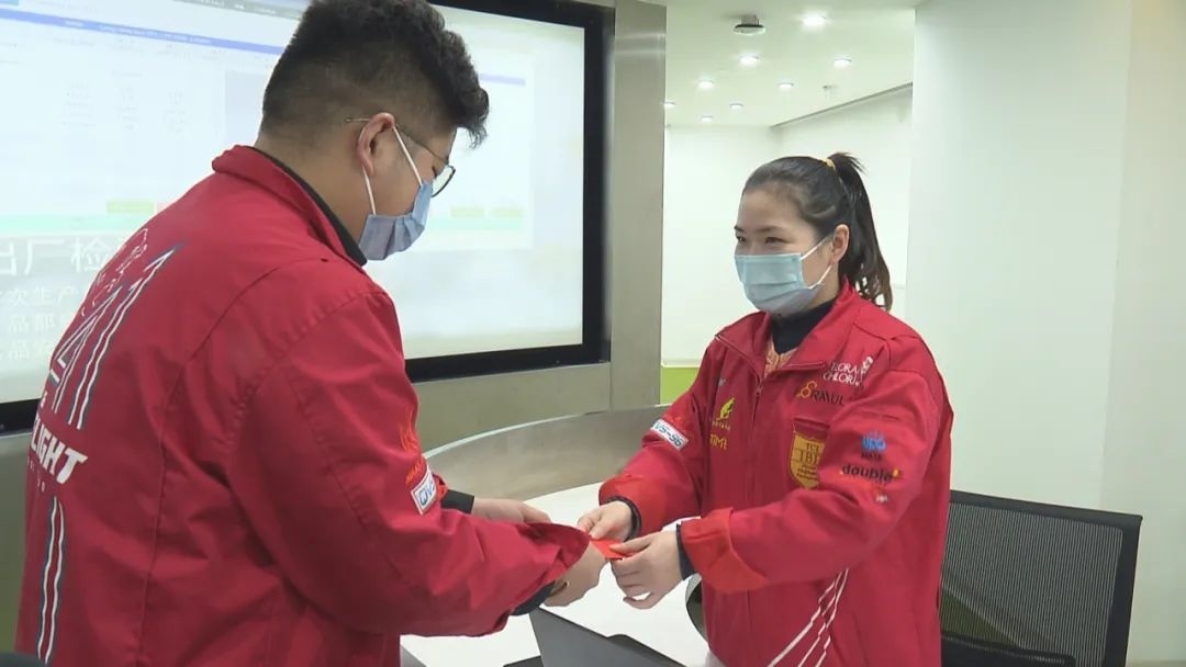 在百岳特生物技术(上海)有限公司内,来自江苏的张小莉收到了公司派发的新年红包。作为一名生产部统计人员,张小莉表示,自己已经三年没回老家了,虽然很想念家乡的父母,但她仍然主动选择了就地过年。