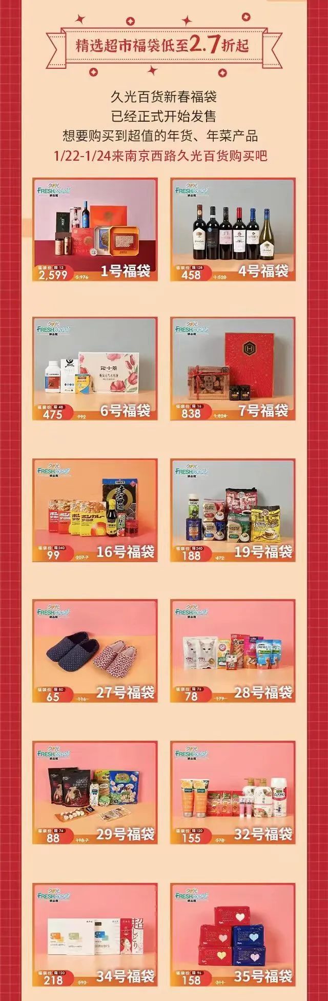 诸多年货好礼超值抢购进行中,新年超市福袋低至2.7折起。