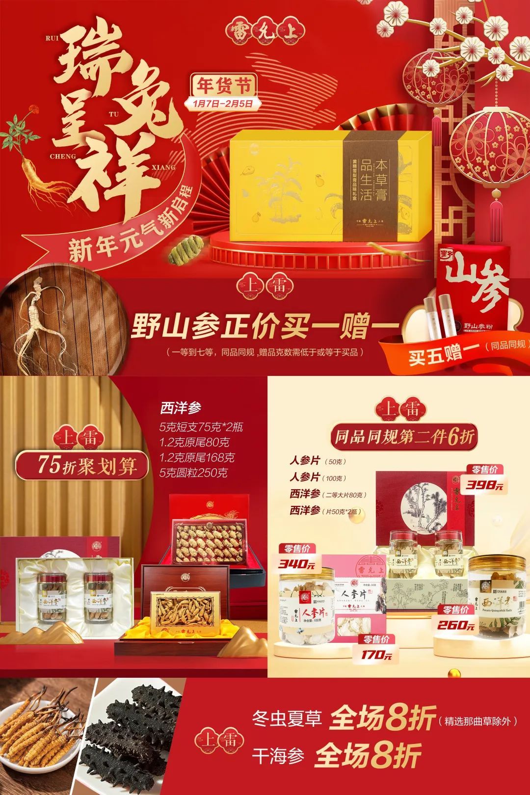 此次年货节活动,包括雷允上药城等20家零售门店,雷允上西区大药房天猫旗舰店及雷允上云药城在内的线上线下渠道将同享年礼,共贺新年。