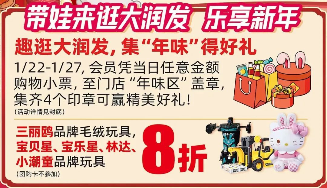 1月22日至1月24日,大润发闸北店凭会员卡单笔实付148元,即可参加新年抽奖活动。
