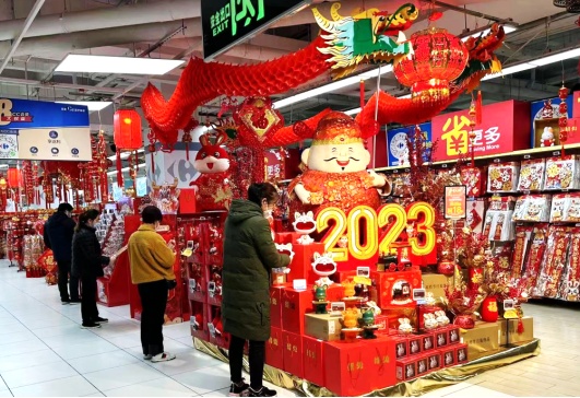 记者在普陀区家乐福门店里看到,琳琅满目的“春节红”商品、年货礼盒、国潮礼盒、兔年饰品,攒动的人潮,满满当当的购物车......置办年货已成消费者头等大事。为此,家乐福近期有针对性多举措优化了商品供应链效率,店内商品种类逐步增多。消费者日常消费、置办年货,均可实现一站式购齐。