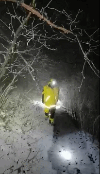 山间飘起了大雪,气温直逼-15℃,去往天池的道路被厚厚的冰雪覆盖,山路结冰难走,再加上天池范围大,救援难度大。