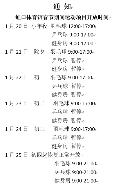 1月17日起,虹口体育馆(精武体育馆)内的羽毛球场、乒乓球馆、健身房等场馆已全面恢复运营!长假期间,部分场馆还对外开放哦~