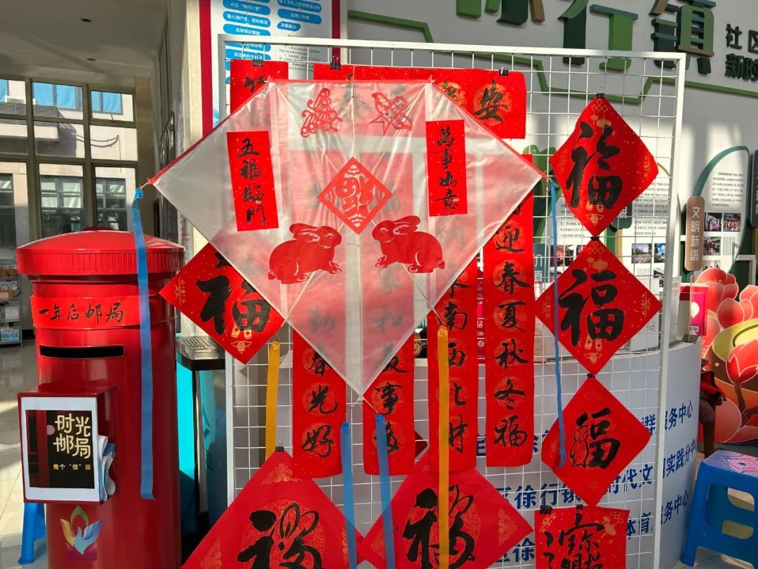 1月18日,记者走进徐行镇文化体育服务中心,红红火火的年味扑面而来。贴着“兔年大吉”“钱兔似锦”的门廊立在大厅东侧,“福”字、春联沿路排开,市民们在铺着红色绒布的桌旁开启手工时间。