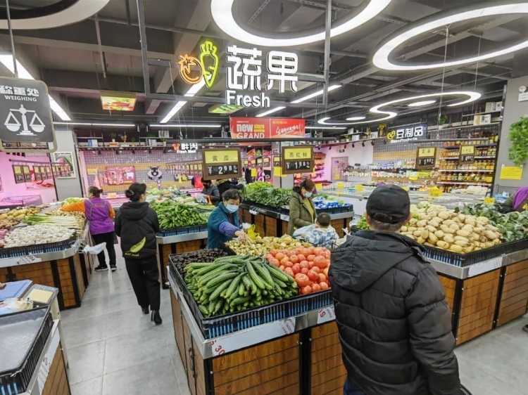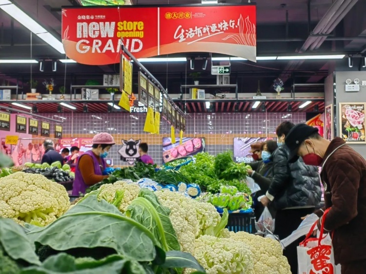 金晓集贸市场的仓库满满当当堆满了居民日常所需用品,生鲜商品提前对接好了产地,确保节日里每天新鲜到货。浦商生鲜荡湾店货源多从杭州、山东直购,春节期间也能保证货品齐全、价格稳定。浦商邻里荟前滩店加大了青菜、冬笋、青椒等热销商品的采购量,还计划年后在底楼开设熟食店、早餐店等,丰富社区生活。