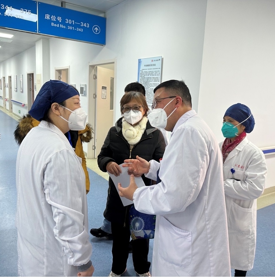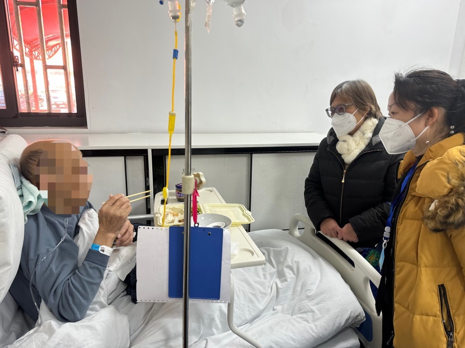 交流活动结束后,双方共同慰问住院治疗的民政救助对象林老。林老1月12日出现气喘胸闷、血氧饱和度低等情况紧急送至公惠医院入院治疗,经过院方的精心治疗,现病情趋于稳定。