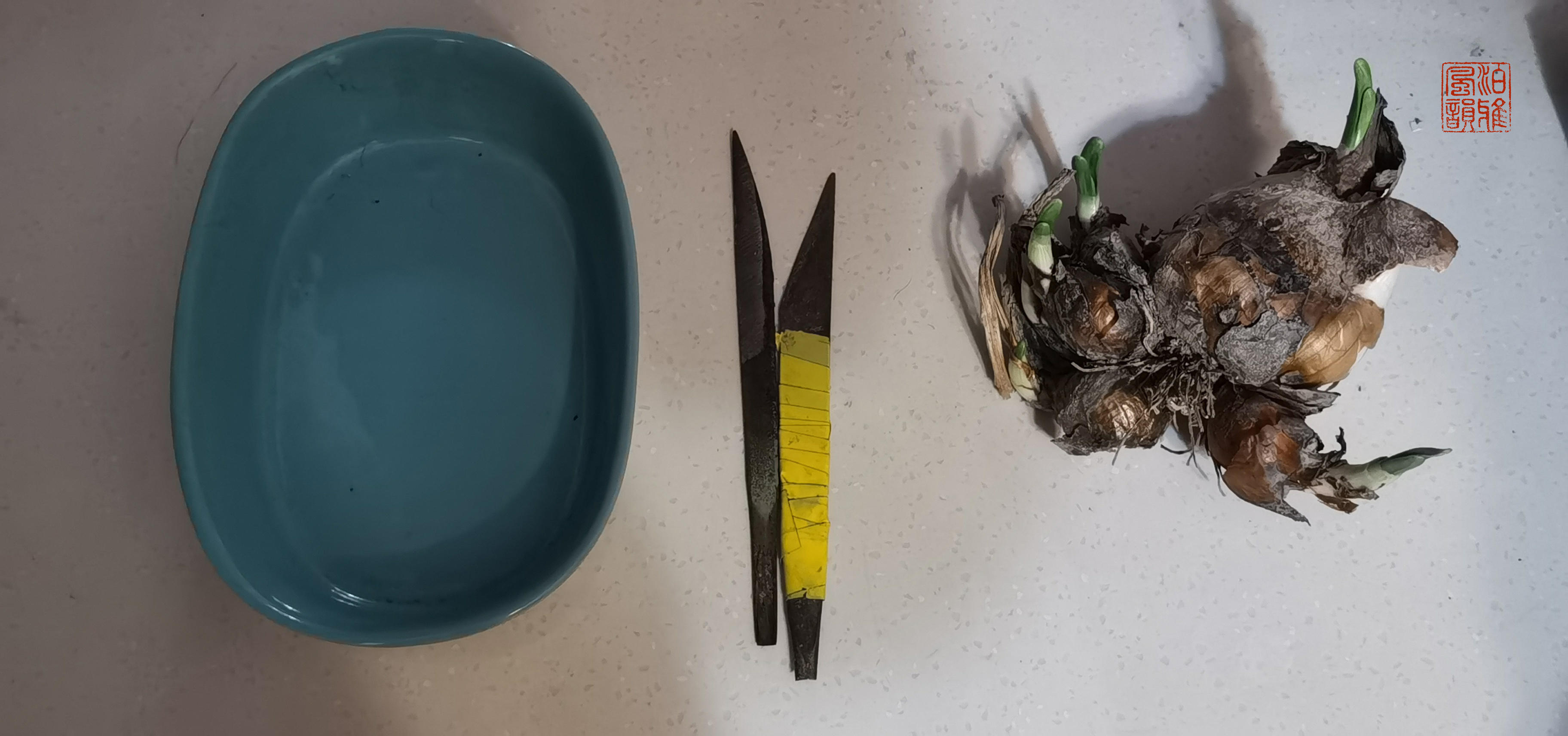 十年前,因为一盆新春盛开的矮化水仙花,他开始痴迷水仙造型艺术,之后便一发不可收拾。业余时间他常常沉迷于摆弄水仙花的世界中。水仙花雕刻技法根据难易程度可以分成不同种类。杨思琪向记者分享了最为传统且简单的雕刻技法:准备好一颗扁大整齐的优质水仙种球,将其放入盛水水仙盆中,用美工刀刮除种球上鳞茎盘枯部分及褐色的杂质,剥去褐色水仙鳞茎,露出白色的身体。随后在种球中沿着绿色黄色芽的中间,顺着鳞茎球的上半部分向着鳞茎盘的方向刻下正面反面两刀,深度约为0.5cm。雕刻完的水仙种球放入水中浸泡约3天,每天换一次清水,还需冲洗种球去除粘液,最后将种球放入盛水的盆中即可。需要注意的是,水仙喜欢太阳,且不可以吹空调,否则会变成发芽的大蒜。