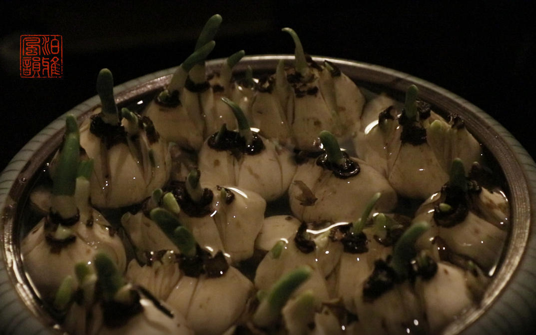 根据以往的经验,杨思琪会在春节前35—45天雕刻水仙种球,这样在春节来临之际就可以欣赏到开花的水仙。在杨思琪看来,水仙花的几架盆器根球与叶花结合形成,形成一幅自然画的景象,寓意自然生机,迎接新春到来。