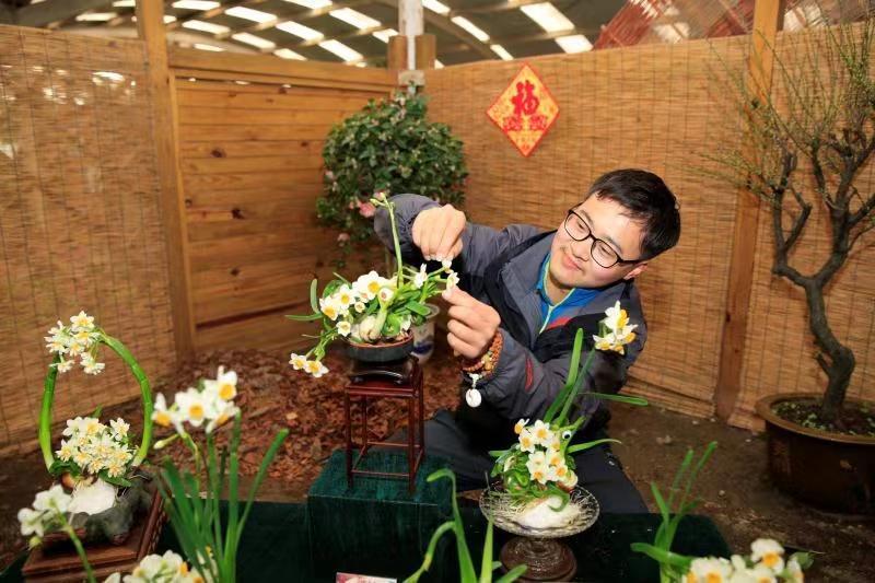 “春节与水仙花的花期刚好吻合,因此受到不少爱花人士的推崇,年前买一盆水仙花放在家中,多样造型的水仙给冬日带来生机的同时,也寄托着人们期盼团聚和吉祥的美好希望。”在学校交流的一堂课上,花卉园艺师杨思琪向着台下的学生们讲述着水仙花雕刻技艺与春节的不解之缘。