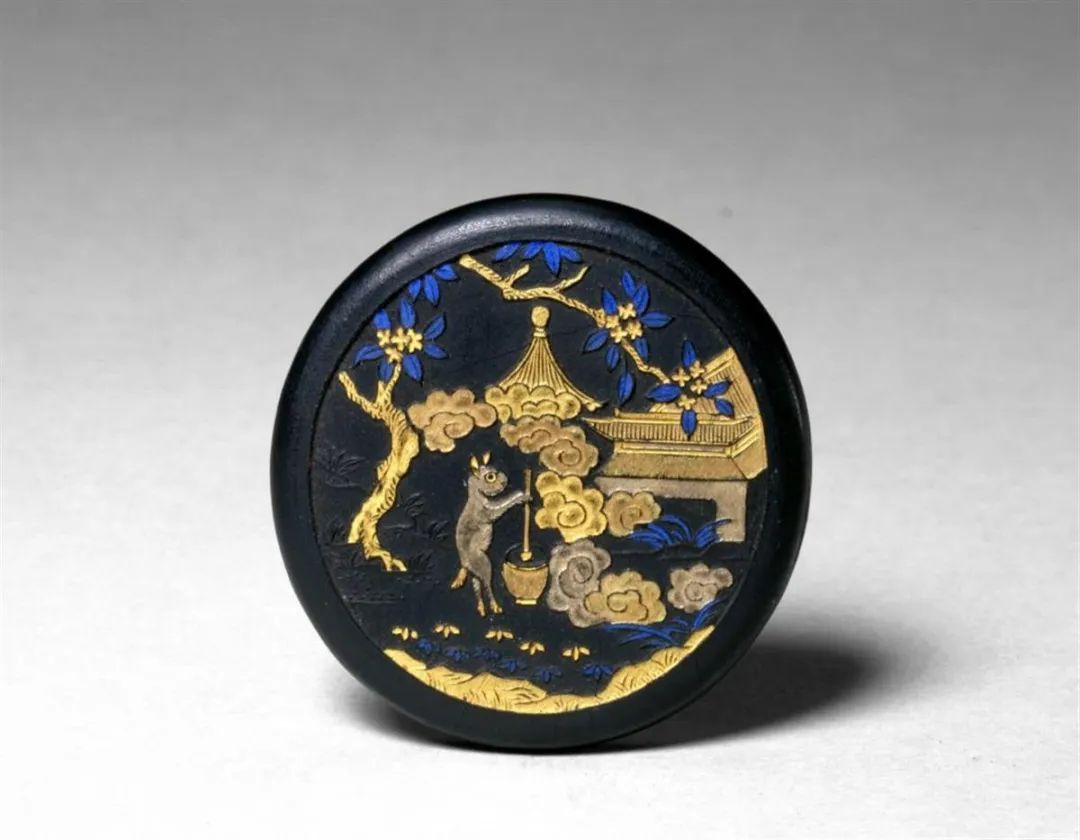 清 汪斗山款麝香月墨(故宫博物院藏),墨上刻有月宫桂花树下玉兔捣药图