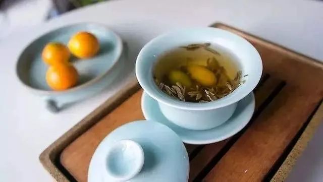 元宝茶,茶内放有青果(青橄榄),春节期间以此待客,不仅讨口彩,还能解腻消食