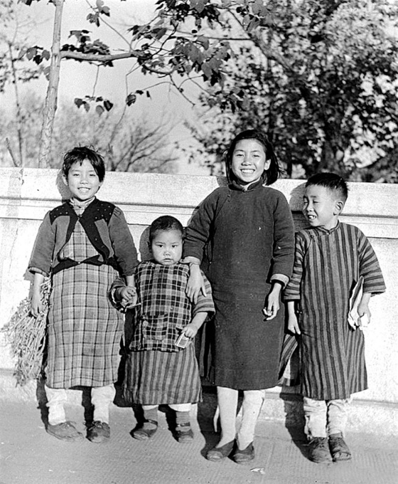 1946年的上海,过年穿新衣的小朋友在一起玩