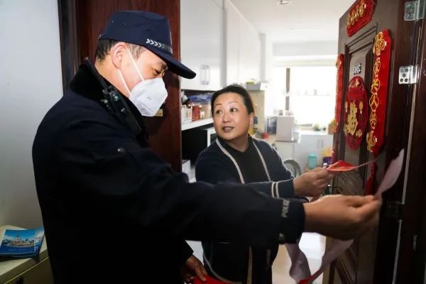 “李阿姨,给你送对联来了!”居民李阿姨是3号公寓楼的“楼组长”,也是韦帮祥的“平安助手”,过年期间她还担负着宣传引导居民到烟花爆竹集中燃放点安全燃放的重要任务。从元旦开始,韦帮祥运用“公寓管家+物业管家+警务管家”的工作模式和沿街商铺“一店一档”的管理制度,加强流动访客登记管理,利用警民微信群对5000余居民进行安全提示,帮助返乡住户“守好家”,指导歇业商铺“关好门”。