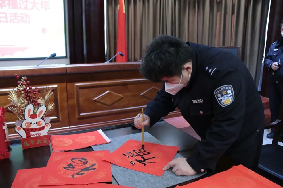 瑞兔呈祥、共贺佳节。在红纸上挥毫泼墨,或一个“福”字,或一副春联,寄托着监狱民警对新春的憧憬、对战友的祝福、对家人的牵挂。