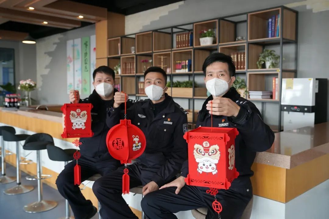 编花灯的现场热闹非凡,参与其中的每个民警都乐在其中。