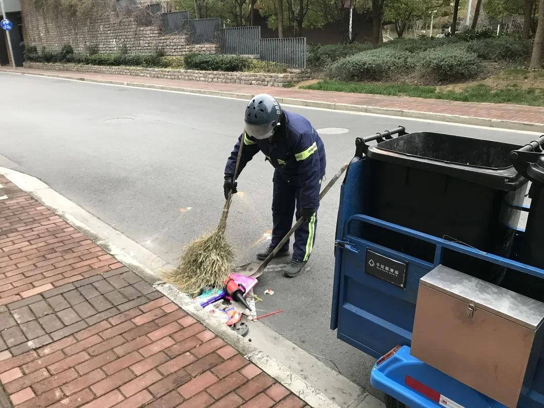 节日期间,在落实好各项安全和防疫措施的基础上,宝山区友谊路街道各环卫公司紧抓辖区各条道路的清扫保洁质量,根据燃放烟花爆竹最多的地点动态调整作业路线和清扫点位,消除道路死角和环境管理的薄弱环节,认真履行环卫保障责任,用实际行动守护好辖区环境,积极营造良好的节日氛围。
