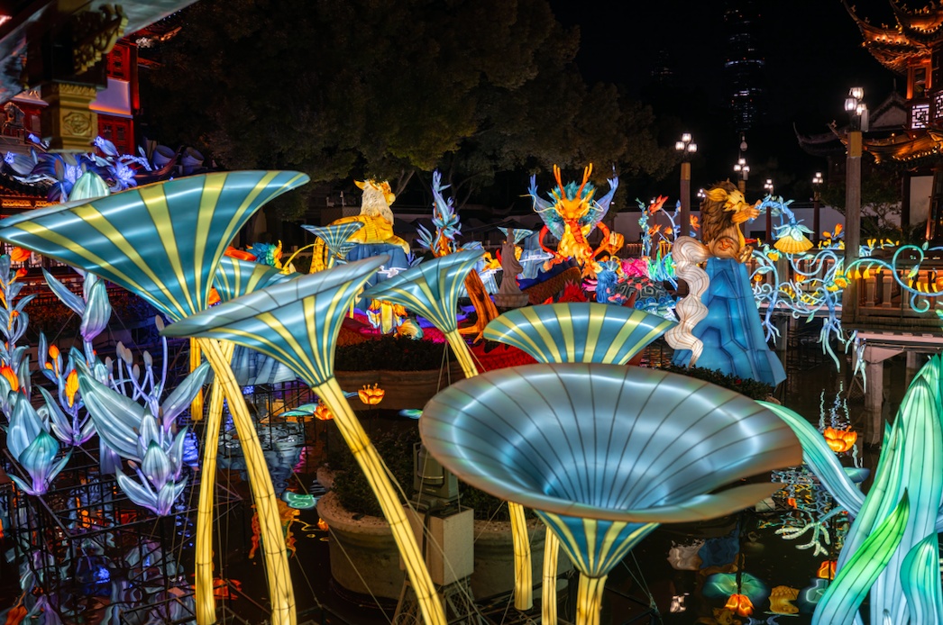 “玉兔东升、鲲鹏万里”,《山海经》中所描绘的上古奇幻世界,如今用非遗灯组呈现在市民游客的眼前,展示了充满神仙瑞兽、奇花异草的东方绚丽幻境。璀璨灯火、传统非遗与海派文化的融合,沉浸式国风体验、线上线下趣味互动于一体,打造了一场文化大美的神话游历奇“豫”。