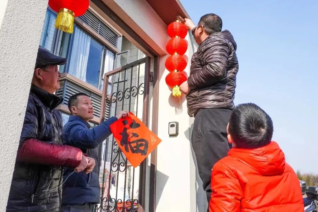 “再往上贴一点,就这样。”这几天,63岁的高永明家里热闹非凡,大家正忙着贴春联、挂红灯笼,为整个新家增添了一抹新春的色彩。今年,他和家人一起在百家村农民集中居住点的新家里过年。