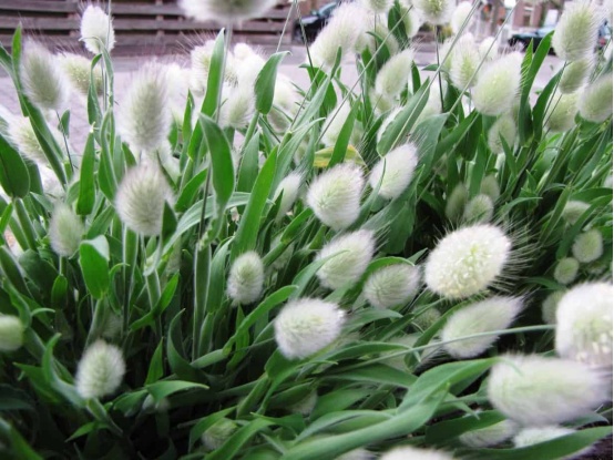 兔尾草的外貌会让人联想到狼尾草或者狗尾草,但兔尾草的花穗更显短圆,不像“狼尾”或“狗尾”那样长而松垮,更像兔子那似毛团般的尾巴,令人心生怜爱。兔尾草的触摸手感也很棒,不管是花穗还是叶片,都如兔毛般柔软,可以让人一改禾本科多数植物“叶片割手、花穗扎人”的印象。兔尾草的名字由此而来,而这也是它在园艺界大受欢迎的原因。兔尾草盆栽已很可爱,干花的观赏价值也毫不逊色,满满一束插入瓶中,蓬松柔软如云朵,你还能根据自己的喜好对“云朵”进行染色,极富趣味。