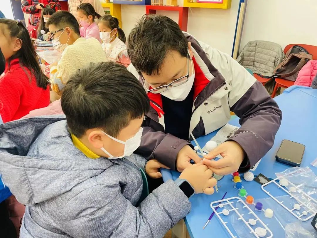 老师从《流浪月球》入手讲起星球知识,给小朋友们介绍了中国探月史、探月的意义以及行星的位置,并且通过让小朋友制作行星仪模型了解每个行星所处的位置和关系,还给小朋友普及星球表面调色涂色的技巧与原理,让小朋友在实践中体会科学的乐趣与严谨,身临其境地去星辰遍布的宇宙中探索关于行星的秘密。家长陪同小朋友一起锻炼动手能力,培养了孩子们热爱生活、感知世界的能力。老师边讲解边带领小朋友耐心组装行星仪模型,以孩子们的视角,向他们传授宇宙的奥秘,度过了一段愉快的时光。